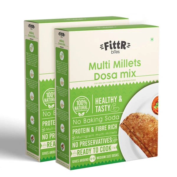 Dosa is the most savoured breakfast (Tiffin) across India. It’s a staple in southern India but equally craved by the rest of India too. FittR Bites brings to you the traditional Indian Dosa in an easy ready-to-cook format and with a twist of millets – nutritious super grains. FittR Millets Dosa mix is made from three millets and three dals. It’s based on homemade recipe and is 100% natural. Millets are gluten free, have low glycemic index and are a source of protein, fibre, vitamins and minerals. Enjoy FittR dosa anytime – it’s serves as a great snack as well as a meal.