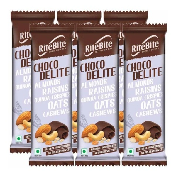 The RiteBite Choco Delite Breakfast & Nutrition Bar is a breakfast and nutrition bar that offers a rich wave of chocolate that serves the cravings. It is mixed with the crunchy bits of almonds and cashews, along with the goodness of golden raisins.